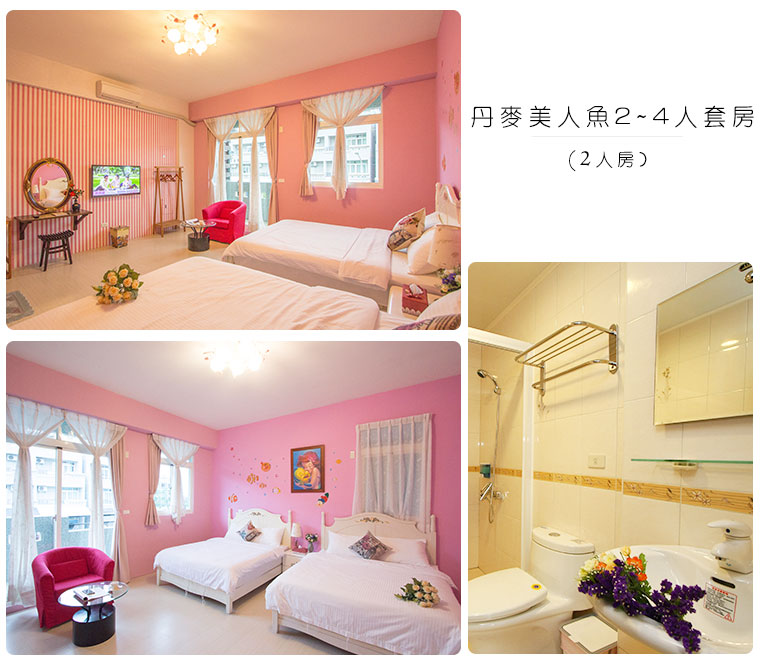 | 丹麥美人魚 | 二~四人套房 | 2 | 1,000 | 1,200 | 2,500 | 4,500 |